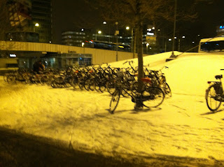 The bicycles were even beautiful when they were covered in snow. For a lot of people, this is their only form of transportation, so the snow can't stop them from getting to the train station.
